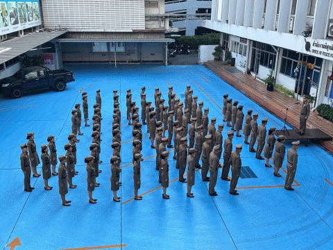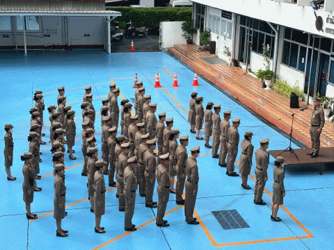 เข้าแถวปฏิญานตน ตรวจเครื่องแต่งกายตำรวจ และทรงผม
