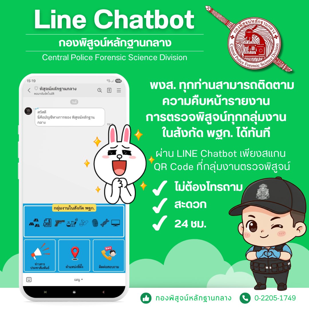 เพียงสแกน QR Code เช็กงานในกลุ่มงานที่ท่านส่งตรวจพิสูจน์วัตถุพยาน