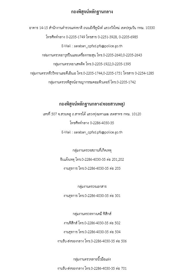 ติดต่อกองพิสูจน์หลักฐานกลาง |